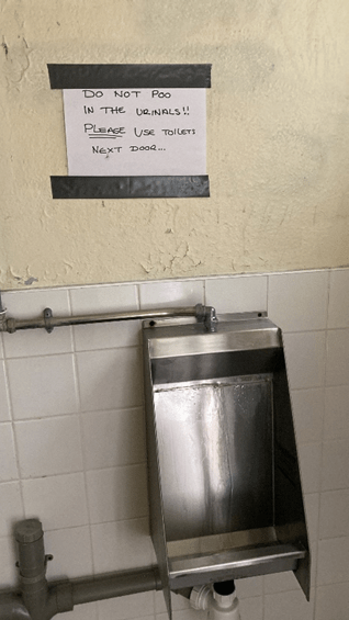 Despite some heavy rain in the morning, the showers abated and Park Hill arrived at Haydon’s Road Rec in good spirits. A sheet of tarpaulin which was covering some but not all of the wicket was duly removed to reveal a rather green and sticky wicket which included several nuggets of dried dog excrement along the popping crease! Off the pitch things didn’t get much better. A quick pitstop at the nearby public toilets revealed that dirty protests were not just confined to the pitch, with a large sign hanging above the urinals with the plea “Do not poo in the urinals!! Please use toilets next door…”. There are certain things in life which you assume would never require explanation…